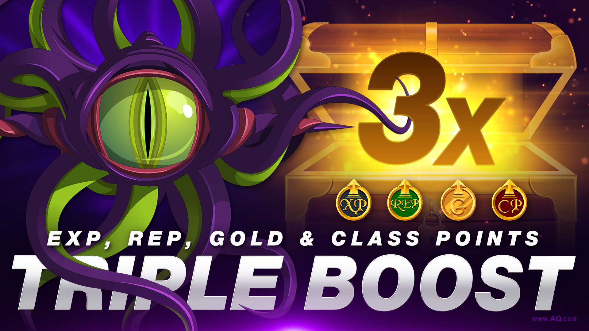 Our 17th birthday celebration continues with your latest gift: a TRIPLE Gold, Rep, EXP, and Class Points Boost all weekend long!