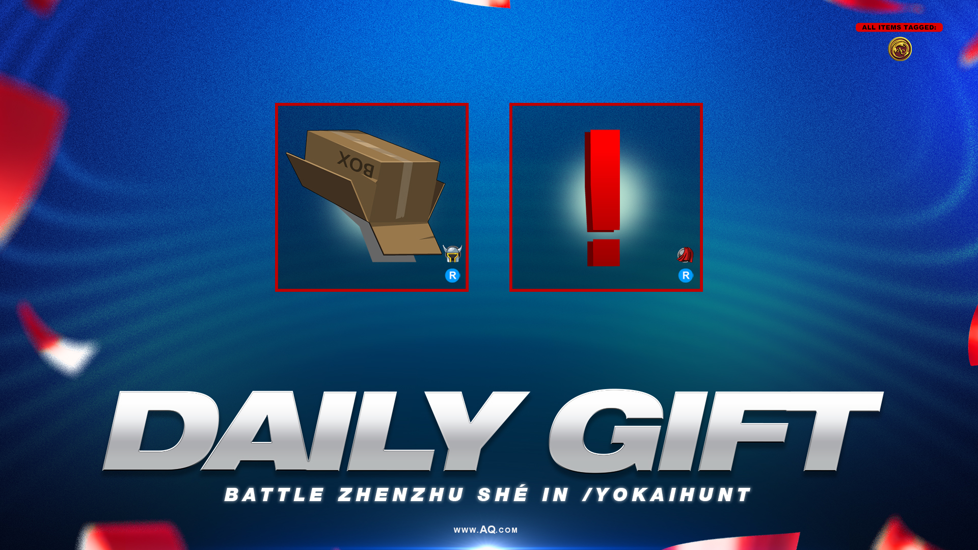 Don't miss Sunday's Daily Gifts! Battle Zhenzhu She in Yokaihunt until March 7th or Zahad in Dreampalace through May 23rd to get the Sturdy Snake's rare homage items: a stealthy Box helm and Surprise cape!