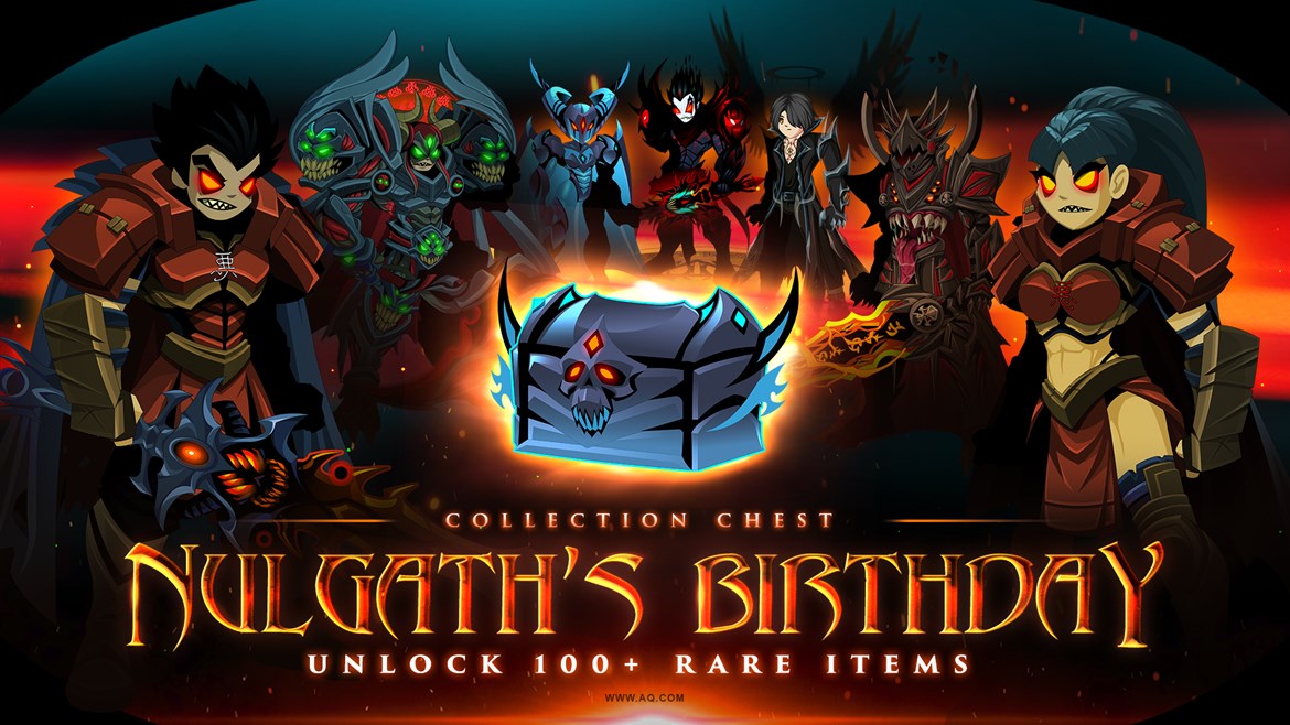 Nulgath’s birthday celebration continues this weekend, and we want everyone to get in on the /party! For all you real-life rare hunters, talk to Nubble the Dark Makai in Battleon to find Nulgath's n2nd shipment of new gear. Find individual items from Nubble's shop in Battleon or get the Winter Void Collection Chest to unlock ALL of the event rares and a character page badge for 10,000 AdventureCoins!