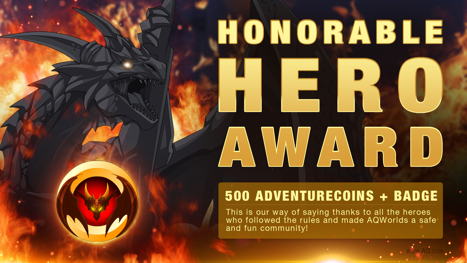 What's an honorable hero, you ask? Good question! They are what true in-game heroes and role models are, and we want to reward them for a year's worth of good behavior... with 500 FREE AdventureCoins and a character page badge!