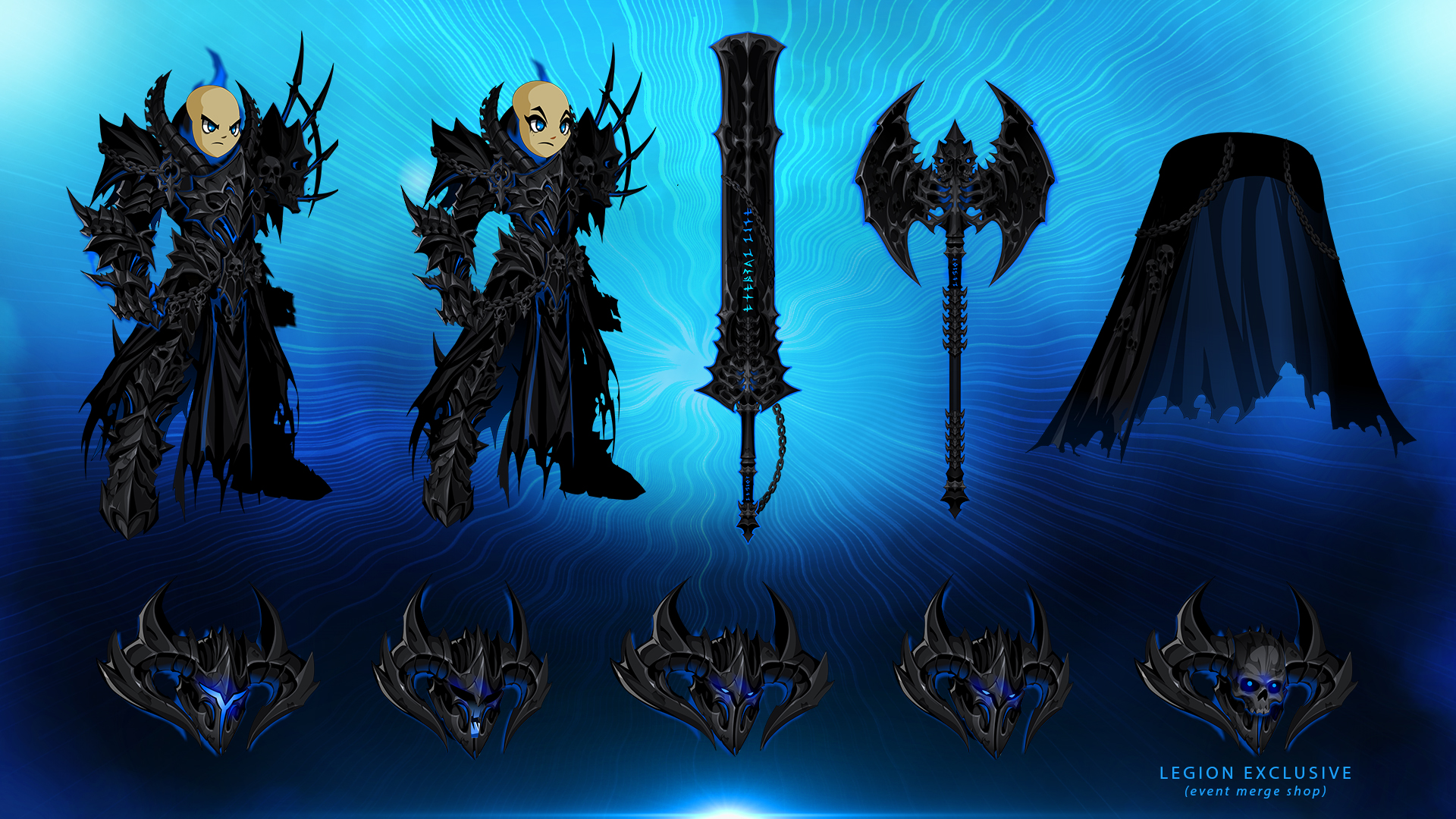 Get the exclusive Underworld Executioner Skull Mask from the Legion Tournament Rewards merge shop. This helm is a part of Dage's Reaper's Reckoning Collection, made by him just for his loyal Legion members. Plus, the original BladeMaster Hair and Locks are now available in the Undead Legion merge shop.