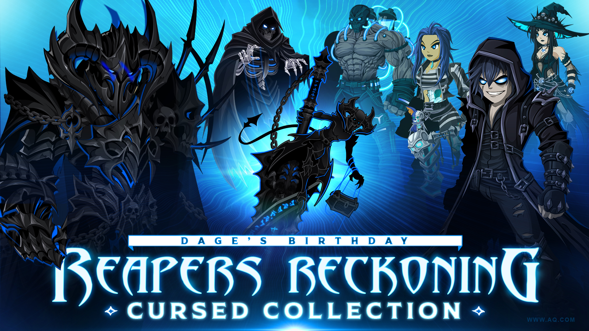 Don't miss the Warlord of the Undying armor, helm, and polearm! Thematically, they're a part of the larger Legion Necrophoenix series that unlocks when you get the Dage's Birthday Bundle from HeroMart... but these items are exclusively available in AQWorlds. They're available in this year's Birthday Rares shop + Collection Chest; in the future, they'll reeturn as part of Dage's seasonal Birthday shop.