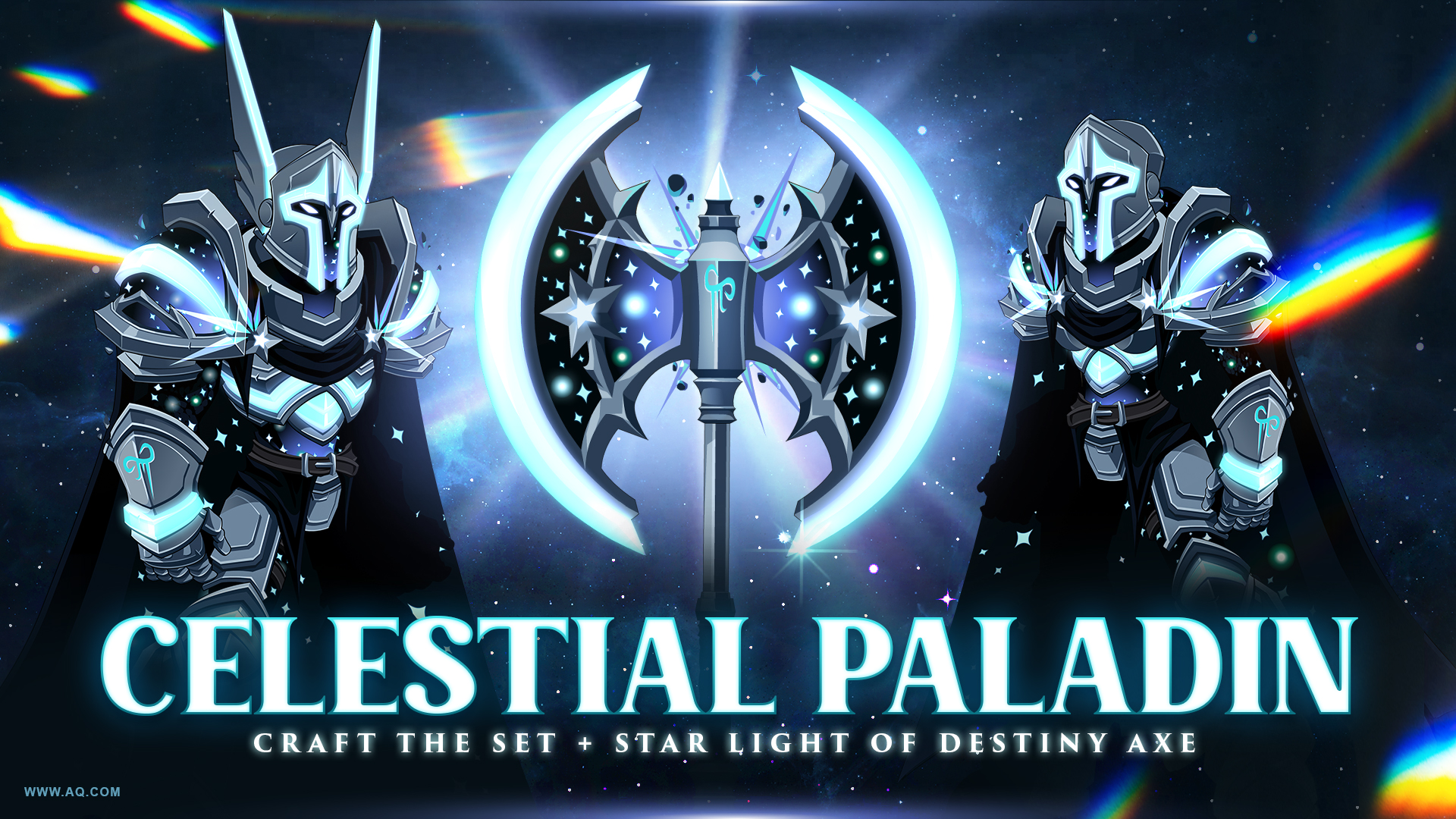 Nothing shines quite as brightly as a Paladin on a mission... unless they've got plate armor made of starstuff! Battle the Cosmic Dragons in the /Novashrine or /AstralShrine maps to craft the pieces of the Celestial Paladin set.