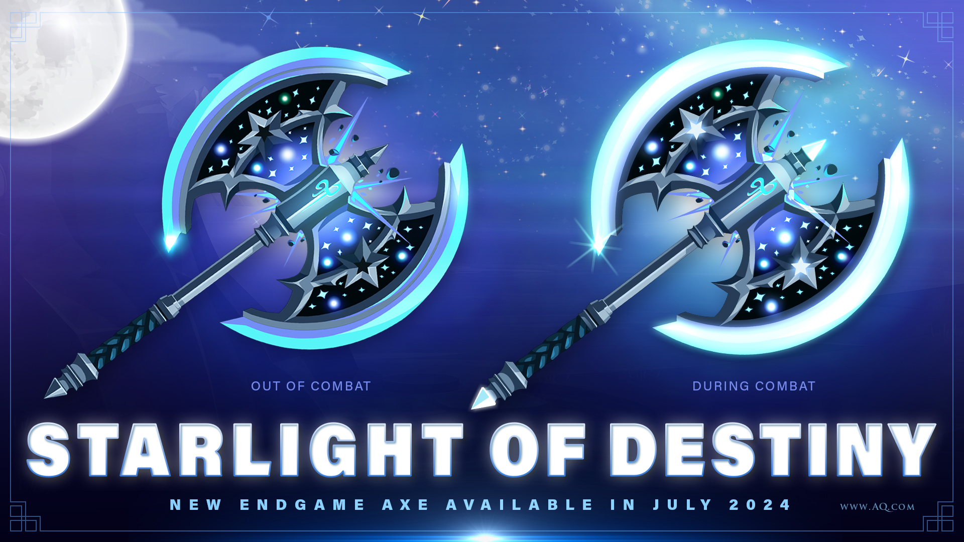 OUT OF THIS WORLD NEWS: the Star Light of Destiny axe is available in six of Artix Entertainment's games this month! Battle to unlock it in AQWorlds, AQ3D, AdventureQuest, DragonFable, EpicDuel and MechQuest.